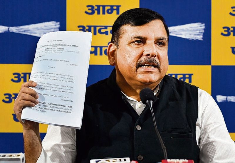 ਇਥੇ ਪੱਤਰਕਾਰਾਂ ਨੂੰ ਸੰਬੋਧਨ ਕਰਦਿਆਂ ਸੰਜੈ ਸਿੰਘ ਨੇ ਕਿਹਾ ਕਿ ਲੋੜ ਪੈਣ ’ਤੇ ਪਾਰਟੀ ਕਾਨੂੰਨੀ ਰਾਹ ਅਖ਼ਤਿਆਰ ਕਰੇਗੀ। ਉਨ੍ਹਾਂ ਬਾਗ਼ੀ ਰਾਜ ਸਭਾ ਮੈਂਬਰਾਂ ਦੀ ਪੇਸ਼ਕਦਮੀ ਨੂੰ ਦਲ ਬਦਲੀ ਵਿਰੋਧੀ ਕਾਨੂੰਨ ਦੀ ਉਲੰਘਣਾ ਦੱਸਿਆ। ‘ਆਪ’ ਨੇ ਰਾਜ ਸਭਾ ਚੇਅਰਮੈਨ ਨੂੰ ਅਪੀਲ ਕੀਤੀ ਕਿ ਸੱਤ ਐੱਮ ਪੀ’ਜ਼ ਦੀ ਮੈਂਬਰਸ਼ਿਪ ਖਾਰਜ ਕੀਤੀ ਜਾਵੇ ਕਿਉਂਕਿ ਇਨ੍ਹਾਂ ਦੀ ਉਪਰਲੇ ਸਦਨ ਲਈ ਚੋਣ ‘ਆਪ’ ਦੀ ਟਿਕਟ ਉੱਤੇ ਹੋਈ ਸੀ, ਪਰ ਮਗਰੋਂ ਉਨ੍ਹਾਂ ਨੇ ਪਾਰਟੀ ਛੱਡ ਕੇ ਭਾਜਪਾ ’ਚ ਰਲੇਵੇਂ ਦਾ ਫੈਸਲਾ ਕੀਤਾ ਹੈ। ਆਮ ਆਦਮੀ ਪਾਰਟੀ ਨੂੰ ਸ਼ੁੱਕਰਵਾਰ ਨੂੰ ਉਦੋਂ ਵੱਡਾ ਝਟਕਾ ਲੱਗਾ ਜਦੋਂ ਇਸ ਦੇ ਸੱਤ ਰਾਜ ਸਭਾ ਮੈਂਬਰ ਰਾਘਵ ਚੱਢਾ, ਅਸ਼ੋਕ ਮਿੱਤਲ, ਸੰਦੀਪ ਪਾਠਕ, ਹਰਭਜਨ ਸਿੰਘ, ਰਾਜੇਂਦਰ ਗੁਪਤਾ, ਵਿਕਰਮ ਸਾਹਨੀ ਤੇ ਸਵਾਤੀ ਮਾਲੀਵਾਲ ਪਾਰਟੀ ਛੱਡ ਕੇ ਭਾਜਪਾ ’ਚ ਸ਼ਾਮਲ ਹੋ ਗਏ। ਇਨ੍ਹਾਂ ਸੰਸਦ ਮੈਂਬਰਾਂ ਨੇ ਦਾਅਵਾ ਕੀਤਾ ਕਿ ਅਰਵਿੰਦ ਕੇਜਰੀਵਾਲ ਦੀ ਅਗਵਾਈ ਵਾਲੀ ਪਾਰਟੀ ਆਪਣੇ ਸਿਧਾਂਤਾਂ, ਕਦਰਾਂ ਕੀਮਤਾਂ ਤੇ ਮੂਲ ਨੈਤਿਕਤਾ ਤੋਂ ਥਿੜਕ ਗਈ ਹੈ।