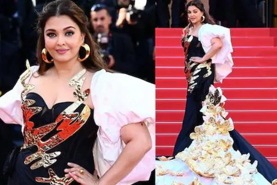 ਐਸ਼ਵਰਿਆ ਰਾਏ ਬੱਚਨ ਨੇ ਕਾਨਸ ਫਿਲਮ ਫੈਸਟੀਵਲ ਦੇ ਰੈੱਡ ਕਾਰਪੇਟ ‘ਤੇ ਸ਼ਾਨਦਾਰ ਲੁੱਕ ਚੁਣਿਆ। ਉਸਨੇ ਇੱਕ ਚਿੱਟੇ ਸ਼ੁਰਗ ਦੇ ਨਾਲ ਇੱਕ ਕਾਲਾ ਮੋਨੋਕ੍ਰੋਮੈਟਿਕ ਡਰੈੱਸ ਪੇਅਰ ਕੀਤਾ। ਉਸ ਦੇ ਪਹਿਰਾਵੇ ‘ਤੇ ਸੁਨਹਿਰੀ ਸ਼ਿੰਗਾਰ ਦਿਖਾਈ ਦੇ ਰਹੇ ਸਨ। ਪਹਿਰਾਵੇ ਦੇ ਪਿਛਲੇ ਪਾਸੇ ਇੱਕ ਲੰਬਾ ਟ੍ਰੇਲ ਹੈ। ਐਸ਼ਵਰਿਆ ਰਾਏ ਬੱਚਨ ਨੇ ਆਪਣਾ ਮੇਕਅਪ ਘੱਟ ਰੱਖਿਆ ਅਤੇ ਬਹੁਤ ਘੱਟ ਐਕਸੈਸਰੀਜ਼ ਨਾਲ ਆਪਣੀ ਦਿੱਖ ਨੂੰ ਪੂਰਾ ਕੀਤਾ। ਵੱਡੇ ਸੁਨਹਿਰੀ ਰੰਗ ਦੇ ਲੂਪਸ ਉਸ ਦੀ ਦਿੱਖ ਵਿੱਚ ਸੁਹਜ ਵਧਾ ਰਹੇ ਹਨ।