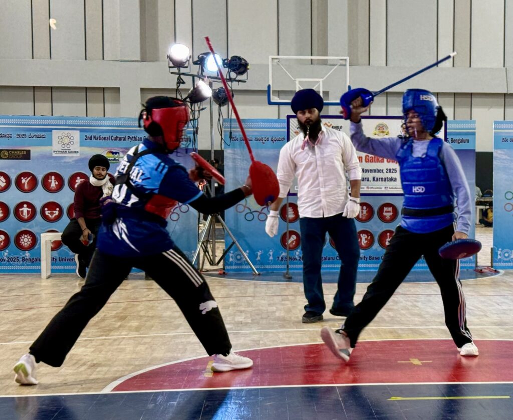 ਬੈਂਗਲੁਰੂ, 7 ਨਵੰਬਰ, 2025 (ਪੰਜਾਬੀ ਖਬਰਨਾਮਾ ਬਿਊਰੋ) – ਦੂਜੇ ਫੈਡਰੇਸ਼ਨ ਗੱਤਕਾ ਕੱਪ – 2025 ਦਾ ਉਦਘਾਟਨ ਅੱਜ ਇੱਥੇ ਬੰਗਲੌਰ ਸਿਟੀ ਯੂਨੀਵਰਸਿਟੀ, ਬੈਂਗਲੁਰੂ ਵਿਖੇ ਮਾਡਰਨ ਪਾਈਥੀਅਨ ਕਲਚਰਲ ਗੇਮਜ਼ ਦੇ ਸੰਸਥਾਪਕ ਅਤੇ ਪਾਈਥੀਅਨ ਕੌਂਸਲ ਆਫ਼ ਇੰਡੀਆ (ਪੀਸੀਆਈ) ਦੇ ਚੇਅਰਮੈਨ ਬਿਜੇਂਦਰ ਗੋਇਲ ਵੱਲੋਂ ਕੀਤਾ ਗਿਆ। ਉਦਘਾਟਨੀ ਸਮਾਰੋਹ ਵਿੱਚ ਨੈਸ਼ਨਲ ਗੱਤਕਾ ਐਸੋਸੀਏਸ਼ਨ ਆਫ਼ ਇੰਡੀਆ (ਐਨਜੀਏਆਈ) ਦੇ ਪ੍ਰਧਾਨ ਐਡਵੋਕੇਟ ਹਰਜੀਤ ਸਿੰਘ ਗਰੇਵਾਲ, ਪਾਈਥੀਅਨ ਗੇਮਜ਼ ਆਰਗੇਨਾਈਜ਼ਿੰਗ ਕਮੇਟੀ ਦੇ ਚੇਅਰਮੈਨ ਬੀ.ਐਚ. ਅਨਿਲ ਕੁਮਾਰ, ਸਨੇਹਾ ਵੈਂਕਟਰਮਨੀ ਸਮੇਤ ਐਸੋਸੀਏਸ਼ਨ ਦੇ ਅਹੁਦੇਦਾਰਾਂ, ਗੱਤਕਾ ਆਫੀਸ਼ੀਅਲਾਂ ਅਤੇ ਦੇਸ਼ ਭਰ ਤੋਂ ਆਏ ਖਿਡਾਰੀਆਂ ਨੇ ਸ਼ਿਰਕਤ ਕੀਤੀ।