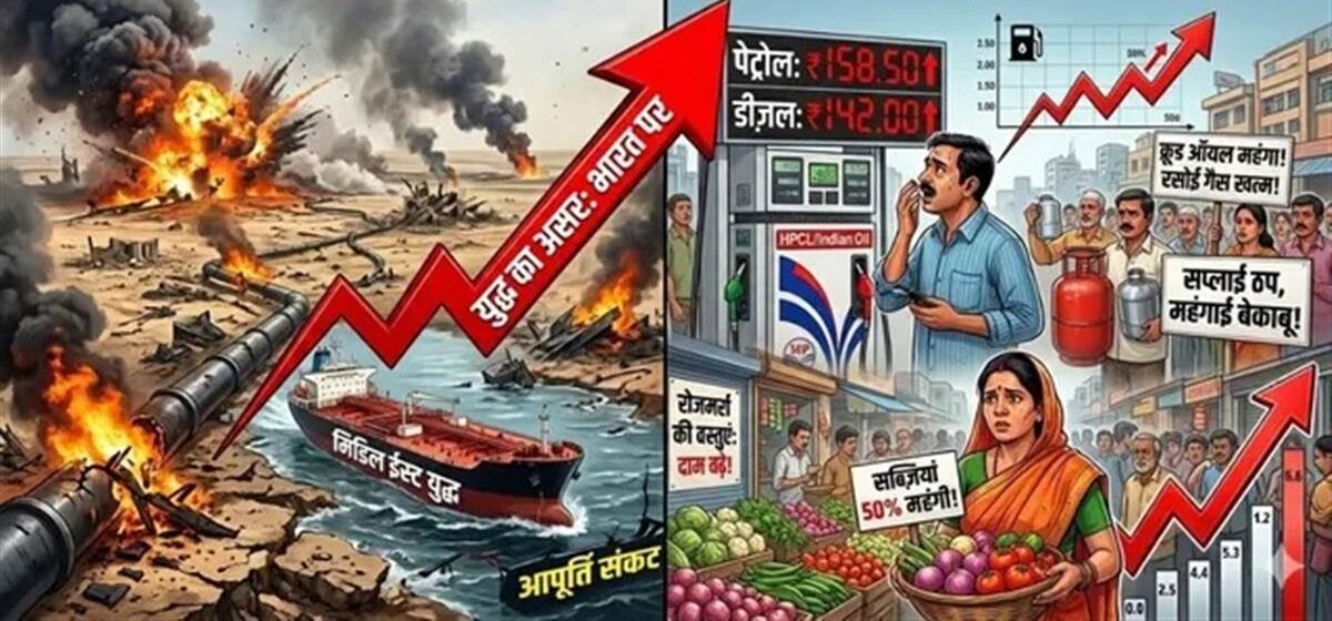 ਨਵੀਂ ਦਿੱਲੀ, 05 ਮਾਰਚ 2026 (ਪੰਜਾਬੀ ਖਬਰਨਾਮਾ ਬਿਊਰੋ):- ਮਿਡਲ ਈਸਟ (ਮੱਧ ਪੂਰਬ) ਦੀ ਜੰਗ ਦਾ ਅਸਰ ਹੁਣ ਭਾਰਤ ‘ਤੇ ਗਹਿਰਾਉਣ ਲੱਗਾ ਹੈ। ਹੋਰਮੁਜ਼ ਜਲਡਮਰੂਮੱਧ (Strait of Hormuz) ਵਿੱਚ ਜਹਾਜ਼ਾਂ ਦੀ ਆਵਾਜਾਈ ਪ੍ਰਭਾਵਿਤ ਹੋਣ ਕਾਰਨ LNG, ਗੈਸ ਅਤੇ ਕੱਚੇ ਤੇਲ ਦੀ ਸਪਲਾਈ ‘ਤੇ ਵੱਡਾ ਸੰਕਟ ਖੜ੍ਹਾ ਹੋ ਗਿਆ ਹੈ। ਹਾਲਾਤ ਅਜਿਹੇ ਹਨ ਕਿ ਪੈਟਰੋਲ ਤੋਂ ਲੈ ਕੇ ਰਸੋਈ ਗੈਸ, ਪਾਈਪਡ ਗੈਸ (PNG) ਅਤੇ ਉਦਯੋਗਾਂ ਤੱਕ ਊਰਜਾ ਦੀ ਪੂਰੀ ਸਪਲਾਈ ਚੇਨ ਦਬਾਅ ਹੇਠ ਆ ਗਈ ਹੈ। ਜੇਕਰ ਤਣਾਅ ਲੰਬਾ ਚੱਲਿਆ ਤਾਂ ਭਾਰਤ ਵਿੱਚ ਬਾਲਣ ਮਹਿੰਗਾ ਹੋਣ ਅਤੇ ਕਈ ਉਦਯੋਗਾਂ ਦੇ ਪ੍ਰਭਾਵਿਤ ਹੋਣ ਦਾ ਖ਼ਦਸ਼ਾ ਵਧ ਗਿਆ ਹੈ।